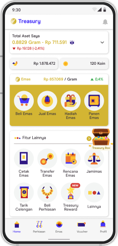 Treasury merupakan platform investasi emas digital untuk membeli, menjual, dan menyimpan emas secara efisien.
